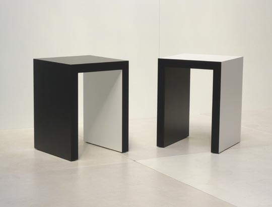 leichter hocker, sandwichkonstruktion mit kartonwabenfüllung, in zweifarbigem kunstharz verpackt.